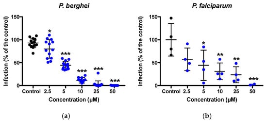 - Paton, D.G.; Childs, L.M.; Itoe, M.A.; Holmdahl, I.E.; Buckee, C.O.; Catteruccia, F. Exposing Anopheles mosquitoes to antimalarials blocks Plasmodium parasite transmission. Nature 2019, 567, 239–243. [Google Scholar] [CrossRef]