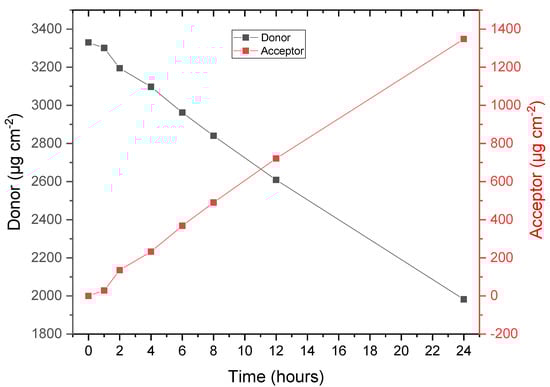 (Equation (1)) where A—integrated area of peak (HPLC), I and S—intercept and slope of the calibration curve, V—volume of the acceptor medium.