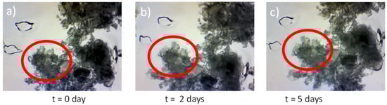 Crystal seeding images of THQ.010 at T = 0 to T = 7 days (a–c) showing that there is no crystal growth from the seed (circled) indicating that the formulation is stable.