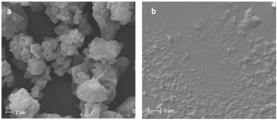 The study of the morphology of bulk CUR crystals and CUR nanocrystals have been carried out by environmental scanning electron microscope (Figure 1). As can be seen from the micrographs, the crystals of the raw CUR appear large with irregular elongated shape (Figure 1a). Conversely, after the milling, the CUR nanocrystals show a regular and rounded shape, with a homogenous particle size distribution, in accordance with DLS analysis (Figure 1b).