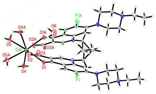 The data presented in this study are available in this article and related Supplementary Material. CCDC No. 2013726 for the calcium(II) complex of enrofloxacin, EFX-Ca, contains the supplementary crystallographic data for this paper. The data can be obtained free of charge via http://www.ccdc.cam.ac.uk, accessed on 15 January 2022, or from the Cambridge Crystallographic Data Centre, 12 Union Road, Cambridge CB21EZ, UK (Fax: +44-1223-336-033; E-mail: deposit@ccdc.cam.ac.uk).