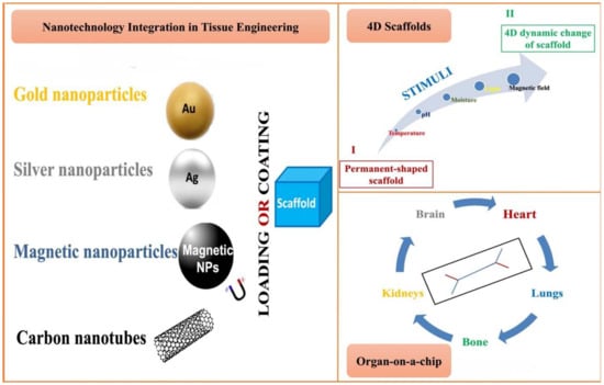 - Hasan, A.; Morshed, M.; Memic, A.; Hassan, S.; Webster, T.J.; Marei, H.E.-S. Nanoparticles in tissue engineering: Applications, challenges and prospects. Int. J. Nanomed. 2018, 13, 5637–5655. [Google Scholar] [CrossRef] [Green Version]