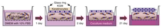 - Itoh, M.; Umegaki-Arao, N.; Guo, Z.; Liu, L.; Higgins, C.A.; Christiano, A.M. Generation of 3D Skin Equivalents Fully Reconstituted from Human Induced Pluripotent Stem Cells (iPSCs). PLoS ONE 2013, 8, e77673. [Google Scholar] [CrossRef]