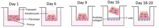 - Shin, J.U.; Abaci, H.E.; Herron, L.; Guo, Z.; Sallee, B.; Pappalardo, A.; Jackow, J.; Wang, E.H.C.; Doucet, Y.; Christiano, A.M. Recapitulating T cell infiltration in 3D psoriatic skin models for patient-specific drug testing. Sci. Rep. 2020, 10, 4123. [Google Scholar] [CrossRef]
