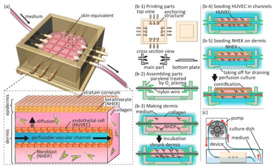 - Mori, N.; Morimoto, Y.; Takeuchi, S. Skin integrated with perfusable vascular channels on a chip. Biomaterials 2017, 116, 48–56. [Google Scholar] [CrossRef]