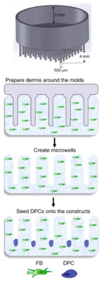 - Abaci, H.E.; Coffman, A.; Doucet, Y.; Chen, J.; Jacków, J.; Wang, E.; Guo, Z.; Shin, J.U.; Jahoda, C.A.; Christiano, A.M. Tissue engineering of human hair follicles using a biomimetic developmental approach. Nat. Commun. 2018, 9, 5301. [Google Scholar] [CrossRef]