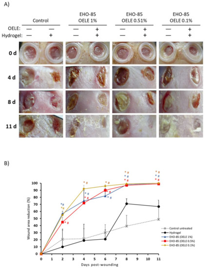 2.6. Wound-Healing Activity of the EHO-85 Hydrogel In Vivo