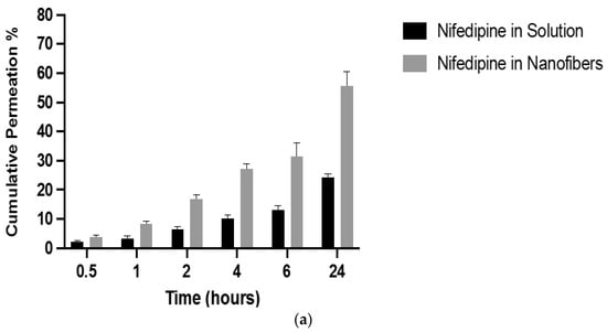 3.7. In Vitro Drug Permeability Determination of the Drug-Loaded Nanofibers