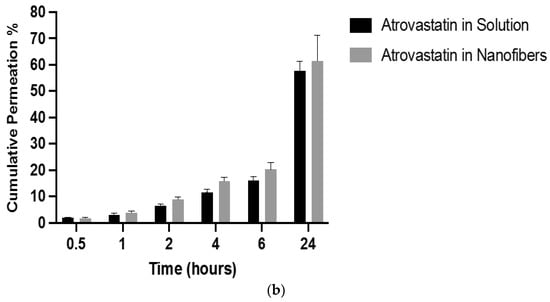 2.11. In Vitro Drug Permeability Determination of the Drug-Loaded Nanofibers