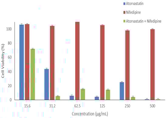 3.8. In Vitro Cytotoxicity Assessment of Nifedipine and Atorvastatin Calcium
