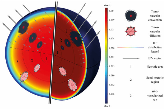 in which , , and are IFV, interstitium hydraulic conductivity, and IFP, respectively. is considered to be constant in this study.