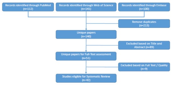 Flowchart explaining the systematic literature search. All retrieved papers were screened, and duplicates were removed, followed by exclusion based on title and abstract, full text, or quality.