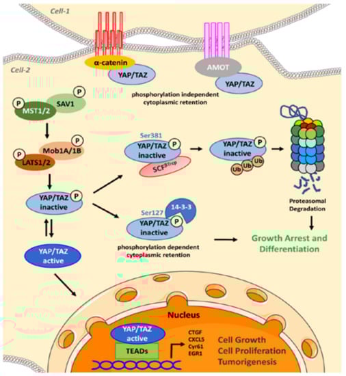 - Lei, Q.-Y.; Zhang, H.; Zhao, B.; Zha, Z.; Bai, F.; Pei, X.-H.; Zhao, S.; Xiong, Y.; Guan, K.-L. TAZ Promotes Cell Proliferation and Epithelial-Mesenchymal Transition and Is Inhibited by the Hippo Pathway. Mol. Cell. Biol. 2008, 28, 2426–2436. [Google Scholar] [CrossRef] [Green Version]