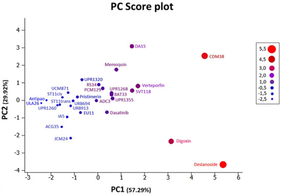 2.7. Characterization of the Chemical-Space: Principal Component Analysis (PCA)