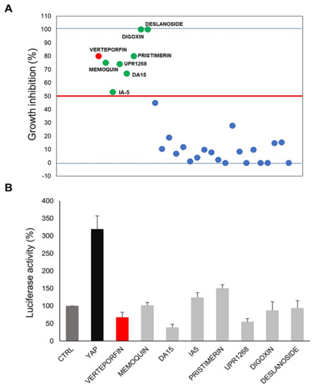 - Elisi, G.M.; Santucci, M.; D’Arca, D.; Lauriola, A.; Marverti, G.; Losi, L.; Scalvini, L.; Bolognesi, M.L.; Mor, M.; Costi, M.P. Repurposing of Drugs Targeting YAP-TEAD Functions. Cancers 2018, 10, 329. [Google Scholar] [CrossRef] [Green Version]