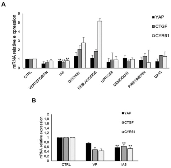 3.7. IA5 Reduces YAP-TEAD Target Genes Expression