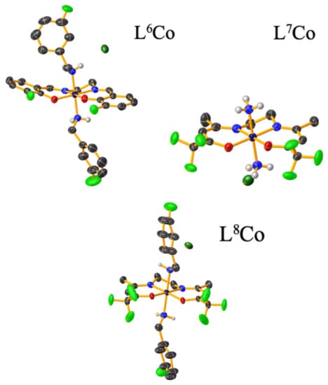 Crystal structures of complexes L6Co–L8Co. Some hydrogen atoms of the corresponding anion were omitted for clarity. CSD database identifier: 1864183–1864185.