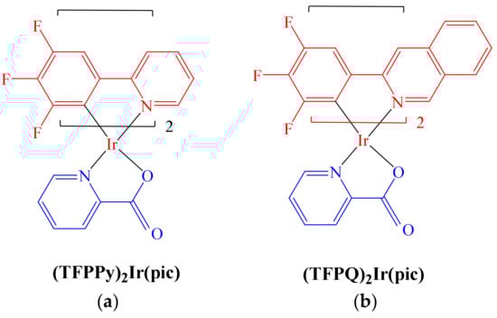 Ir (III) [(TFPPy)2Ir(pic)] (a) and [(TFPQ)2Ir(pic)] complexes (b).