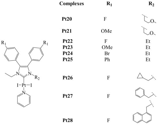 Pt(II)-NHC Pt20–Pt28 complexes.