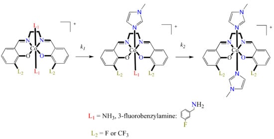 Proposed ligand exchange pathway for [Co(Schiff base)(L)2]+ complexes.