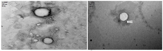 The morphological evaluation of the optimized EH-loaded emulsomal formulation was conducted by (TEM) (JEOL JEM1230, Tokyo, Japan) operating at an accelerating voltage of 80 kV. A drop of the sample was deposited on a carbon-coated copper grid to form a thin film. Before the film dried on the grid, it was negatively stained with 1% phosphotungstic acid (PTA). A drop of the staining solution was applied to the film, and the excess was drained off with filter paper. The grid was allowed to air dry thoroughly and samples were viewed in a transmission electron microscope.