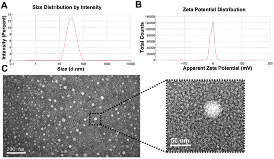 Characterization of the propofol-mixed micelles. (A) Size distribution, (B) zeta potential, and (C) representative TEM image.