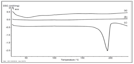 Pure PGZ exhibited a sharp endothermic peak detected at 197.3 °C, corresponding to its melting point and its crystalline state, while, SYL had no characteristic endothermic peak due to its amorphous state (Figure 3). DSC thermogram of S-SNEDDS showed a complete disappearance of PGZ endothermic peak; this indicated the complete solubilization of the drug within the S-SNEDDS and that the adsorption process was successful in keeping the drug in the solubilized form protected from precipitation []. A peak at 53 °C was observed for S-SNEDDS thermogram, corresponding to the dehydration process.