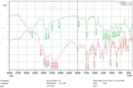 Fourier transform infrared (FTIR) spectroscopy was recorded for the characterization of crystallinity and polymorphic changes using a Shimadzu FTIR- 8400 spectrophotometer, Japan. FTIR Spectrum of pure PGZ was compared to the S-SNEDDS formulation. Samples were blended with potassium bromide powder. The test was conducted over a frequency range of 4000–400 with a resolution of 4 cm−1 and the average of 16 scans was recorded.