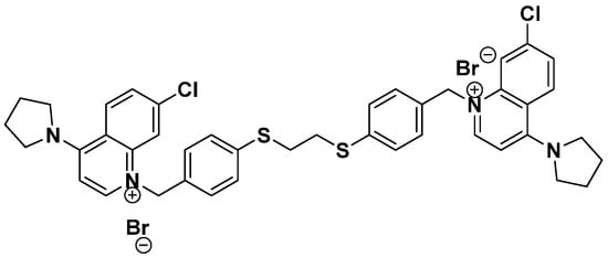 To date, our group has carried out studies with ChoKα1 inhibitors that have cationic heads derived from quinolinium, isoquinolinium or pyridinium. Our results indicate that, with these heads, changes in the spacer lead to more effective inhibition of the ChoKα1 enzyme while also causing antiproliferative activity [19,21,22], albeit to variable extents in different cell lines. However, the main drawback of previously synthesised inhibitors resides in the lack of total convergence between the inhibition and antiproliferation values. Docking and SAR studies have provided evidence of the binding and activity of biscationic and symmetrical inhibitors, but biological tests have pointed out that other factors could be affecting the cell-growth outcome.