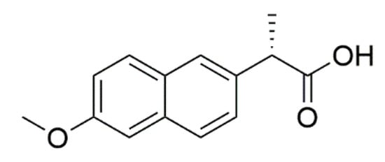 A suitable method for naproxen concentration determination was developed internally and validated using standards of known concentration. Drug concentration analyses were performed on an Agilent 1100 system (Agilent Technologies Inc., Santa Clara, CA, USA) equipped with a quaternary pump, a photodiode array UV-Vis detector, and a Waters XTerra RP18 column (3.5 μm particle size, 50 × 4.6 mm dimension). The mobile phases consisted of 0.05% trifluoroacetic acid in water and in acetonitrile. Gradient elution was utilized with the acetonitrile mobile phase increasing from 2 to 65% over 6.5 min at a flow rate of 1.25 mL/min. The column was heated at 30 °C and the detection was carried out at 254 nm.