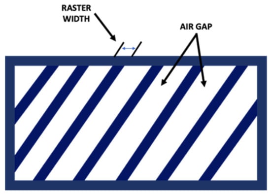 Figure 5. Raster width and air gap. - Raster angle: the direction that the raster tool path is deposited on the x-axis, which could vary from 0° to 90° (Figure 6).