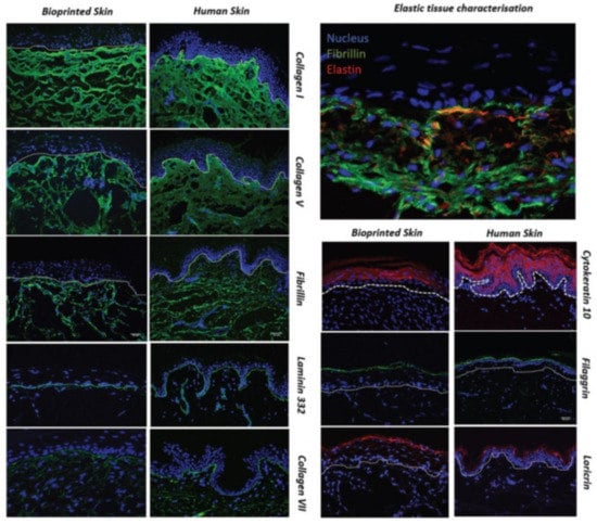- Cubo, N.; Garcia, M.; Del Cañizo, J.F.; Velasco, D.; Jorcano, J.L. 3D Bioprinting of Functional Human Skin: Production and in Vivo Analysis. Biofabrication 2016, 9, 015006. [Google Scholar] [CrossRef] [PubMed] [Green Version]