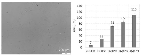 High pressure homogenization of cucumber resulted in a mean particle size of >4000 nm and a PdI > 0.8 (DLS data). With this large size and the broad size distribution, the size of the cucumber PlantCrystals cannot be reliably assessed via DLS and NTA. Hence, other techniques were required to obtain meaningful size results for the cucumber PlantCrystals. Therefore, LD and LM were utilized for the size characterization of the cucumber PlantCrystals (Figure 5).