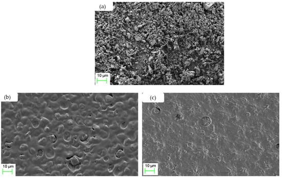 The surface pH measurements were performed at room temperature by adding a small drop of deionized water on the top of the films and letting them sit for 30 s before measurement. The pH was noted after bringing the electrode of the pH meter in contact with the solution and allowing equilibration for 30 s. The average of three determinations for each formulation was calculated (n = 3).