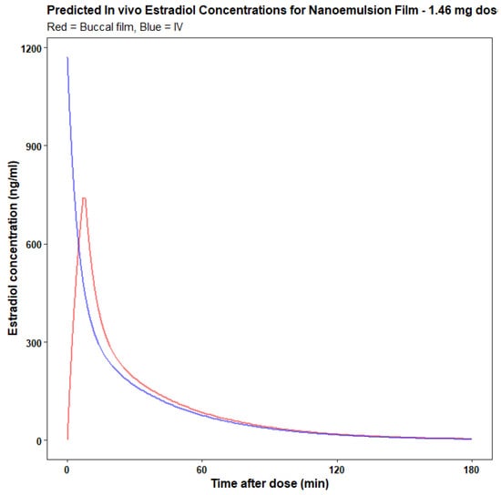 titletext <- “Predicted In vivo Estradiol Concentrations for Nanoemulsion Film—1.46 mg dose”