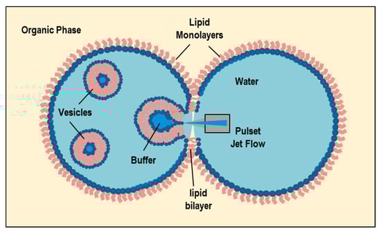 - Funakoshi, K.; Suzuki, H.; Takeuchi, S. Formation of giant lipid vesiclelike compartments from a planar lipid membrane by a pulsed jet flow. J. Am. Chem. Soc. 2007, 129, 12608–12609. [Google Scholar] [CrossRef] [PubMed]