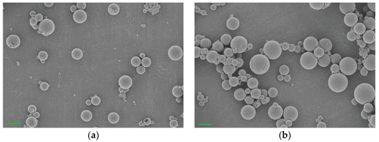 Figure 2), both Dex-PLGA and Dex-PLGA/PBMP showed spherical shapes with an average diameter of approximately 0.7 μm. Compared to the sizes of the particles (40–50 μm) in our previous report [