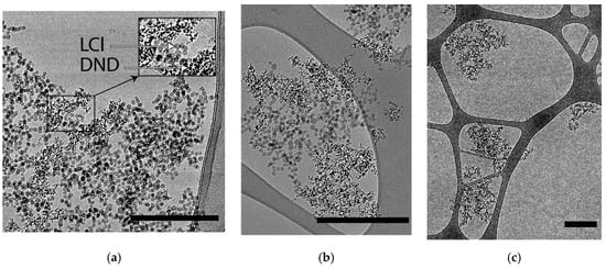 Cryo-TEM images demonstrate the formation of nanoparticle clusters in LCl/DND mixtures (