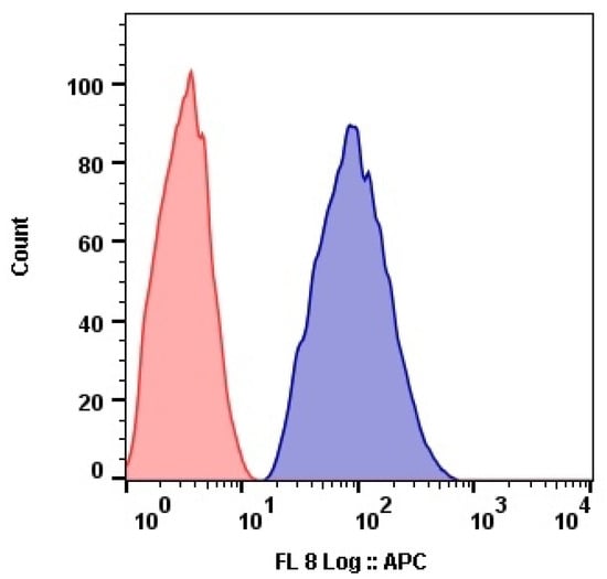 10 × 104 MCF-7 cells were plated in a 35 mm Petri dish in 1.75 mL of media 24 h before the experiment. A total of 250 µL of capsules with Nile Red (1% vol., 0.05 mg/mL dye) were added to the cells for 2 h. After incubation, the cells were detached with trypsin-EDTA, rinsed twice with cold PBS, and collected by centrifugation at 500× g. The fluorescence intensity of the cells was measured with Dako CyAn ADP flow cytometer equipped with a 635 nm laser and a 665 nm band-pass filter. For each sample (105 cells), the mean fluorescence intensity (MFI) was determined.