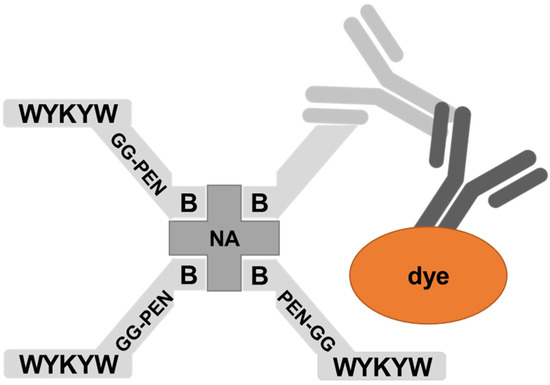 30]. The peptides were attached to a Neutravidin hub through a biotinylated linker (