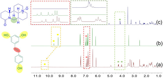 One-dimensional 1H NMR spectra of co-amorphous forms of OMAR-RES (a), resveratrol (b), and oxymatrine (c) dissolved in DMSO-d6.