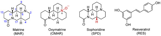 All compounds used in this study were from commercial sources and used as received, including matrine (≥98%), oxymatrine (≥96%), and sophoridine (≥99%) (Bide Pharmatech, Shanghai, China) and resveratrol (≥99%) (Aladdin, Shanghai, China). All other chemical reagents were from Sinopharm Chemical Reagent (Shanghai, China).