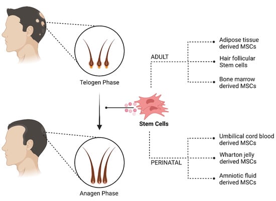 Cellular therapy for non-scarring alopecia. Created with BioRender.com (accessed on 1 March 2022).