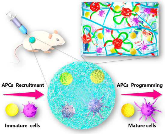 - Liu, Y.; Xiao, L.; Joo, K.-I.; Hu, B.; Fang, J.; Wang, P. In Situ Modulation of Dendritic Cells by Injectable Thermosensitive Hydrogels for Cancer Vaccines in Mice. Biomacromolecules 2014, 15, 3836–3845. [Google Scholar] [CrossRef] [Green Version]