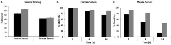 3.5. Human and Mouse Serum Binding Assay and Stability Assay