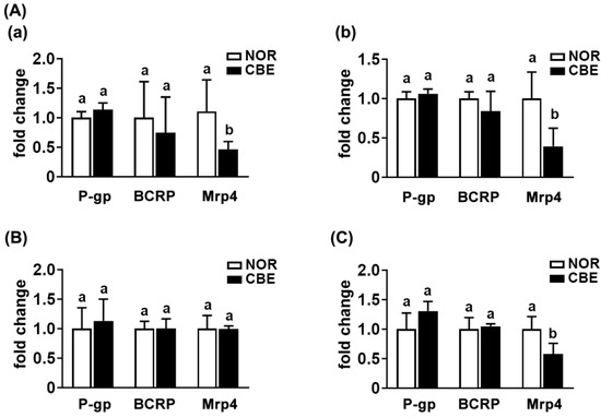 3.4. The Intake of CBE Suppressed Mrp4 Expression in Mice