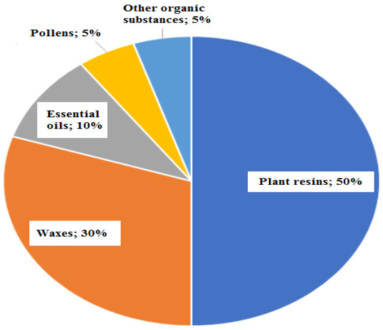 - Anjum, S.I.; Ullah, A.; Khan, K.A.; Attaullah, M.; Khan, H.; Ali, H.; Bashir, M.A.; Tahir, M.; Ansari, M.J.; Ghramh, H.A.; et al. Composition and functional properties of propolis (bee glue): A review. Saudi J. Biol. Sci. 2019, 26, 1695–1703. [Google Scholar] [CrossRef] [PubMed]