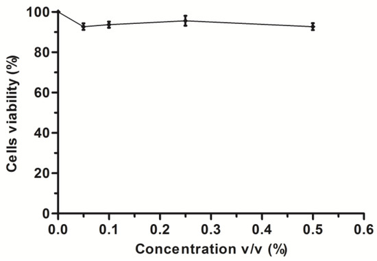 The cytotoxicity profile of different concentrations v/v (%) of blank SNEDDS formulations (n = 3, mean ± SD).