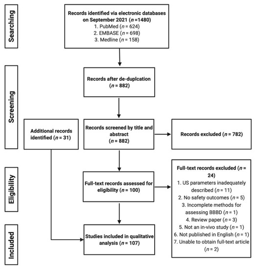 APA StyleGandhi, K., Barzegar-Fallah, A., Banstola, A., Rizwan, S. B., & Reynolds, J. N. J. (2022). Ultrasound-Mediated Blood–Brain Barrier Disruption for Drug Delivery: A Systematic Review of Protocols, Efficacy, and Safety Outcomes from Preclinical and Clinical Studies. Pharmaceutics, 14(4), 833. https://doi.org/10.3390/pharmaceutics14040833