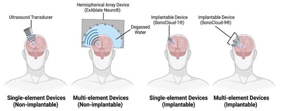 - Meng, Y.; Pople, C.B.; Budiansky, D.; Li, D.; Suppiah, S.; Lim-Fat, M.J.; Perry, J.; Sahgal, A.; Lipsman, N. Current state of therapeutic focused ultrasound applications in neuro-oncology. J. Neurooncol. 2022, 156, 49–59. [Google Scholar] [CrossRef]
